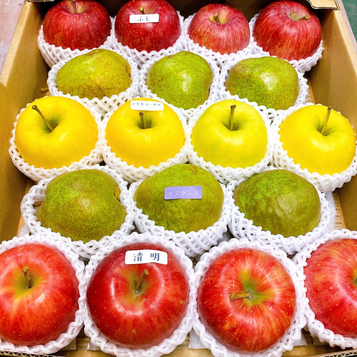 「りんご」と「西洋梨」を詰め合わせてお届けします。